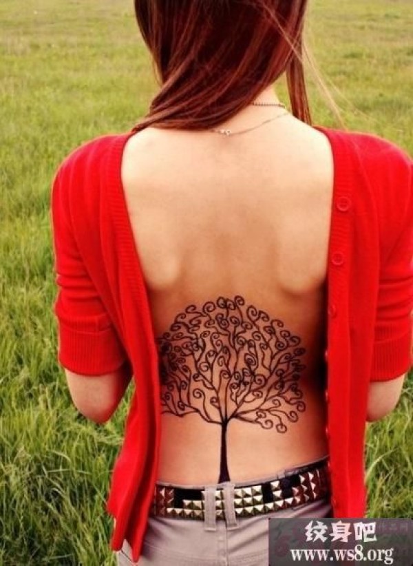 女生后腰小树时尚纹身图案_女生纹身图案大全_纹身图吧