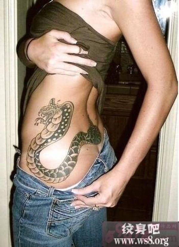 美女侧腰眼镜蛇纹身图案_女生纹身图案大全_纹身图吧