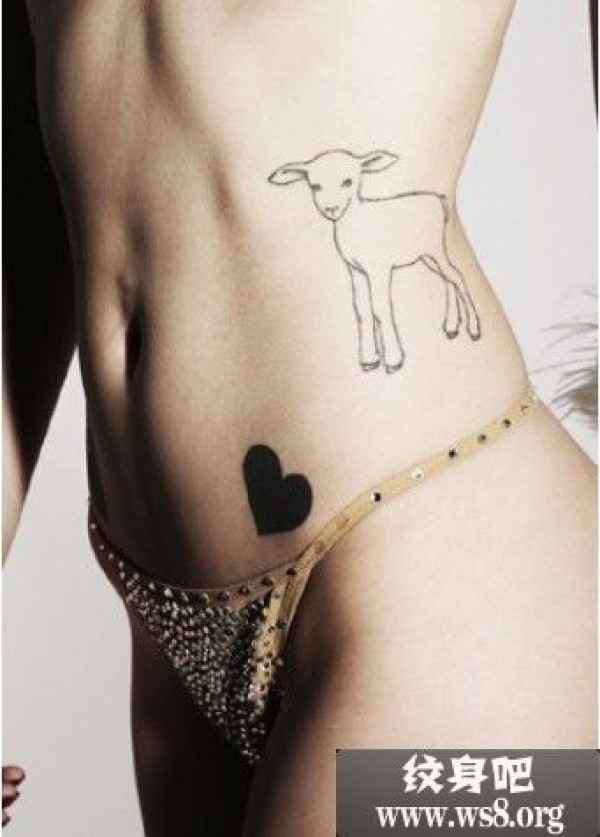 丁字裤美女侧腰可爱小羊纹身图案_女生纹身图案大全_纹身图吧