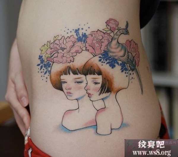 侧腰泡温泉美女纹身图案_女生纹身图案大全_纹身图吧
