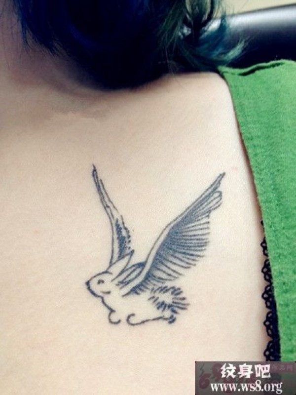 美女胸前飞翔玉兔可爱纹身图案_女生纹身图案大全_纹身图吧