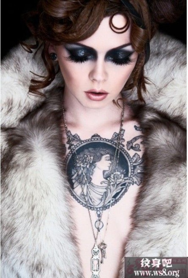 美女胸前希腊女神纹身图案_女生纹身图案大全_纹身图吧