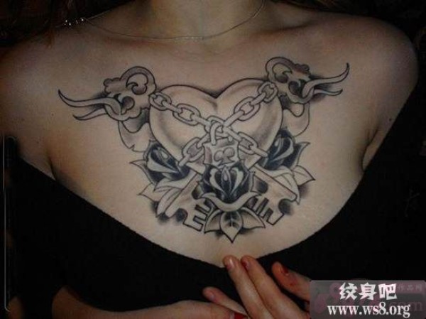 美女胸前戴枷锁心纹身图案_女生纹身图案大全_纹身图吧