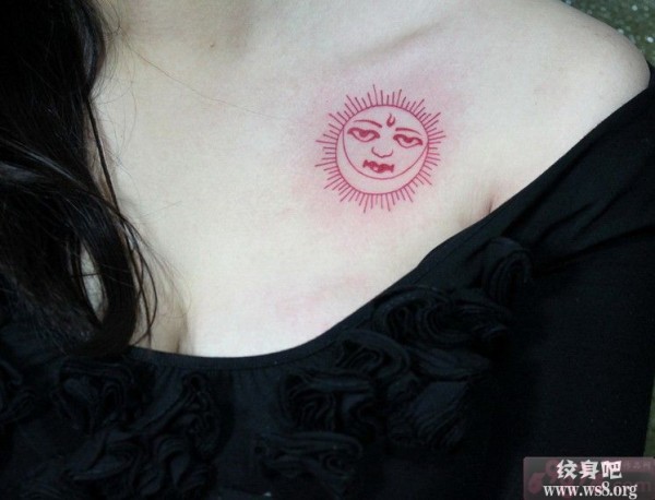 美女胸前太阳神个性纹身图案_女生纹身图案大全_纹身图吧