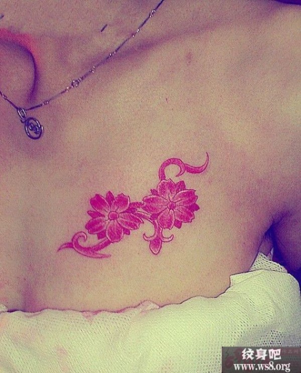性感女人胸部娇艳梅花纹身图案_女生纹身图案大全_纹身图吧