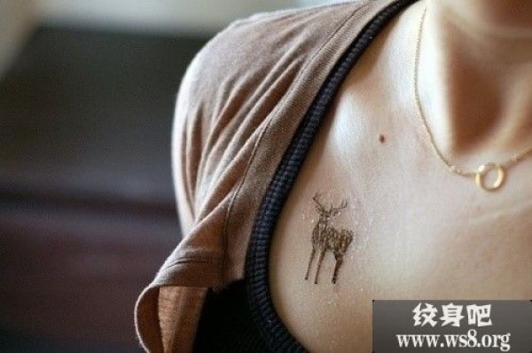 女生胸部可爱小鹿纹身图案_女生纹身图案大全_纹身图吧