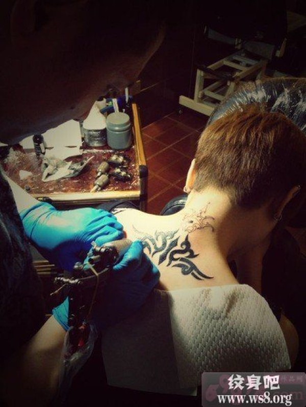美女颈部图腾纹身现场图案_女生纹身图案大全_纹身图吧