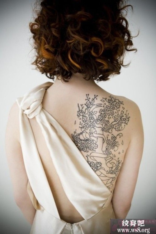 女生后背唯美桃花树图案_女生纹身图案大全_纹身图吧