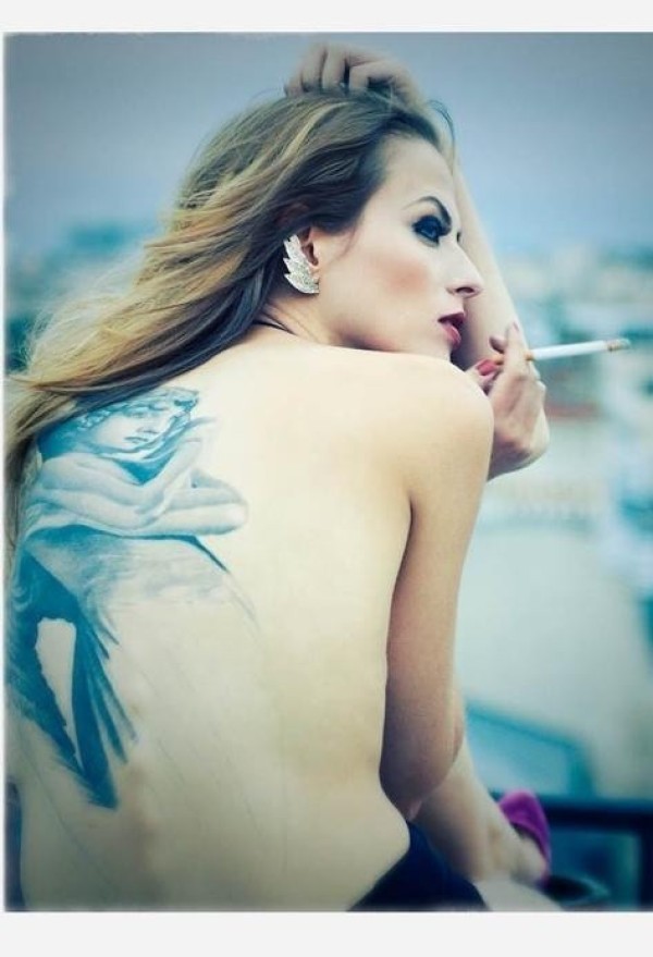 欧美女性背部肖像刺青_女生纹身图案大全_纹身图吧