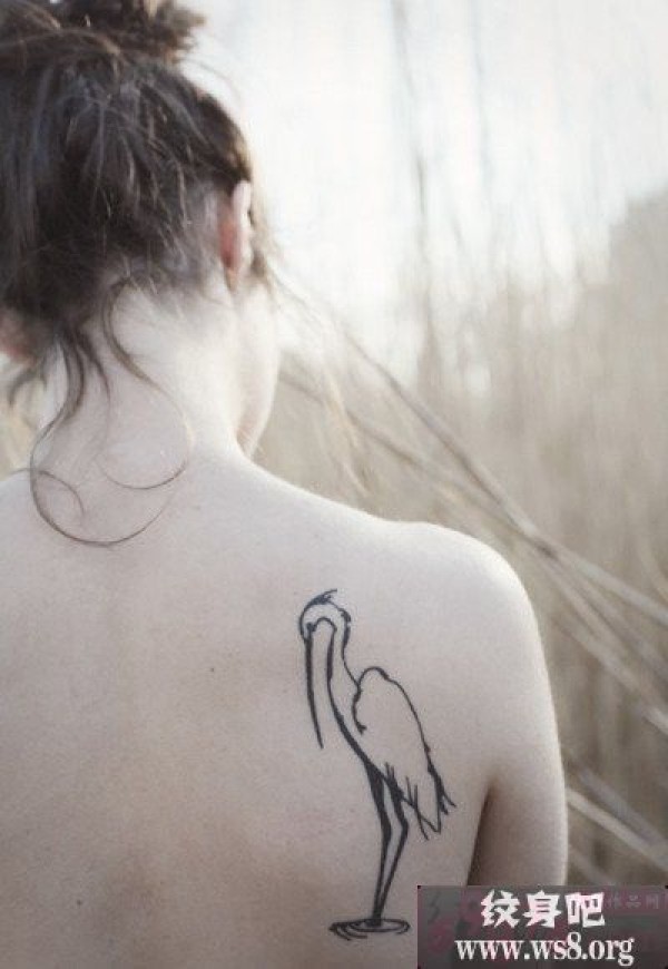 女生背部丹顶鹤时尚图案_女生纹身图案大全_纹身图吧