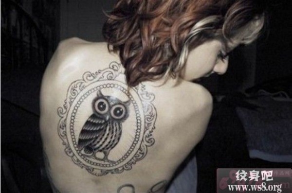 欧美女生背上个性猫头鹰图案_女生纹身图案大全_纹身图吧