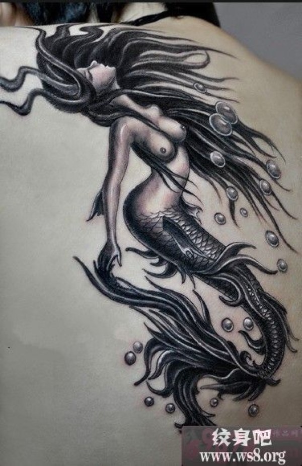 背部美女鱼图案_女生纹身图案大全_纹身图吧