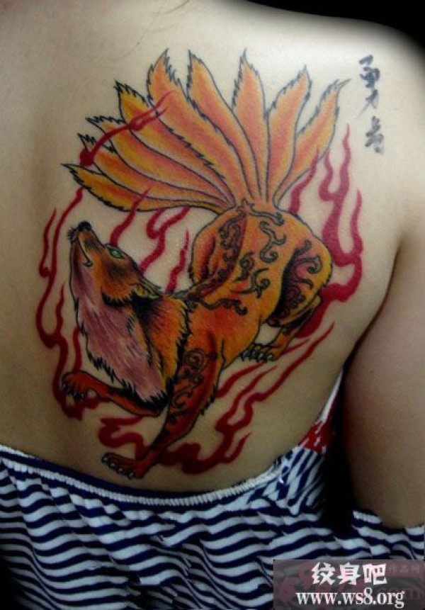 霸气美女后背狼图案_女生纹身图案大全_纹身图吧