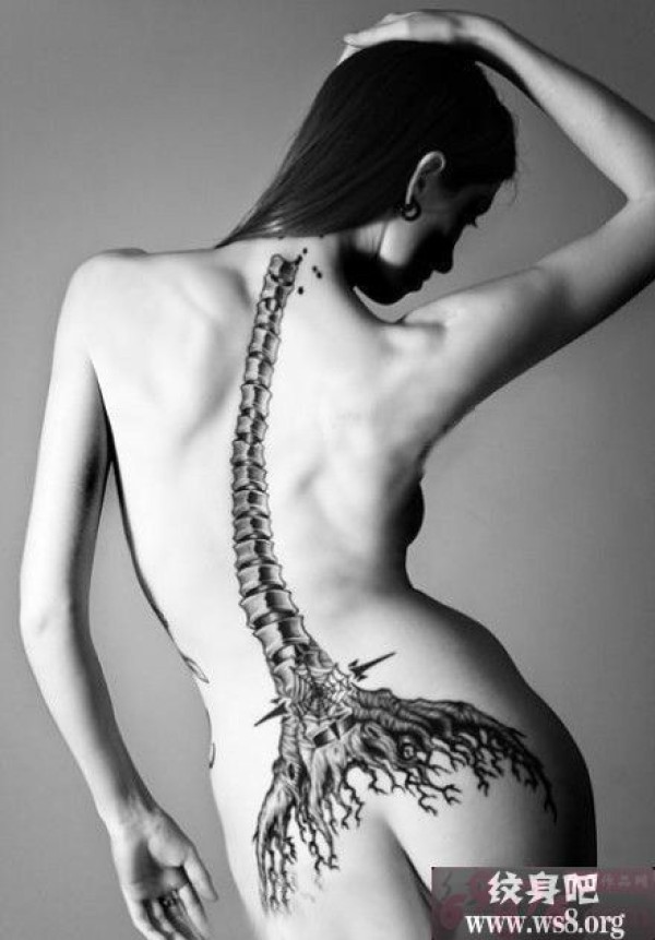 性感美女背部个性树根刺青图案_女生纹身图案大全_纹身图吧