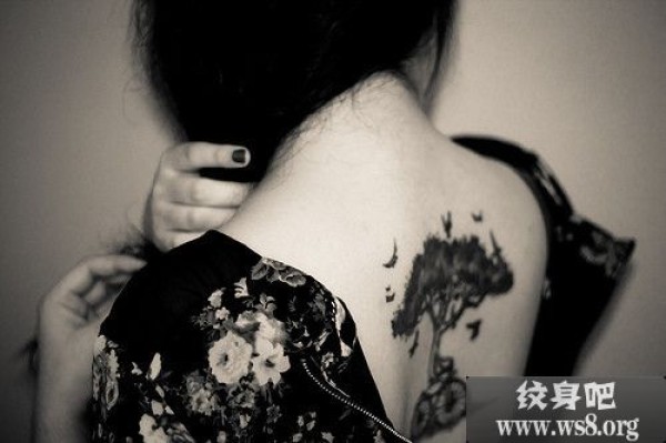 女生背上个性唯美树刺青图案_女生纹身图案大全_纹身图吧