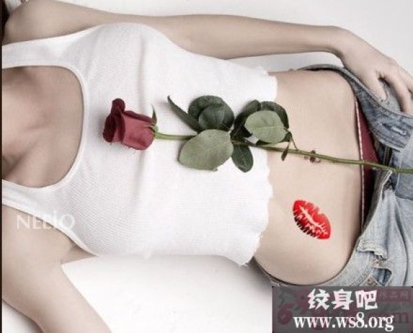 女生腹部个性红唇时尚刺青图案_女生纹身图案大全_纹身图吧
