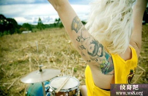 欧美女生彩色肖像另类手臂刺青图案_女生纹身图案大全_纹身图吧