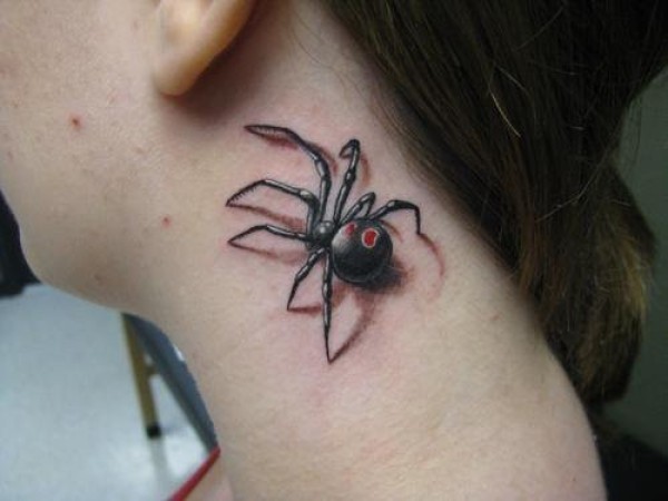 女性颈部一只逼真的蜘蛛纹身_女生纹身图案大全_纹身图吧