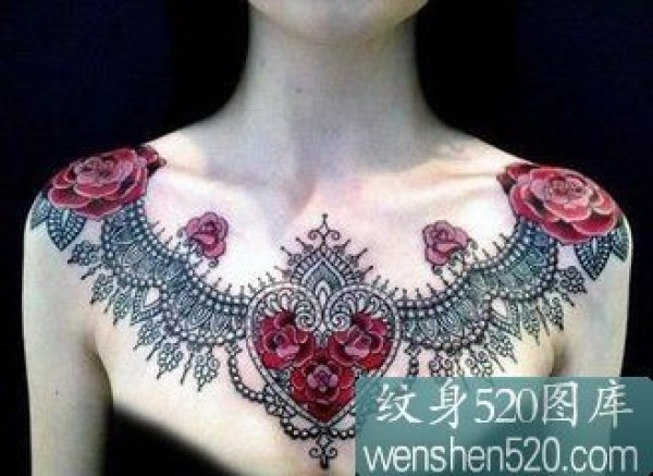 美女前胸漂亮的蕾丝纹身图案_女生纹身图案大全_纹身图吧