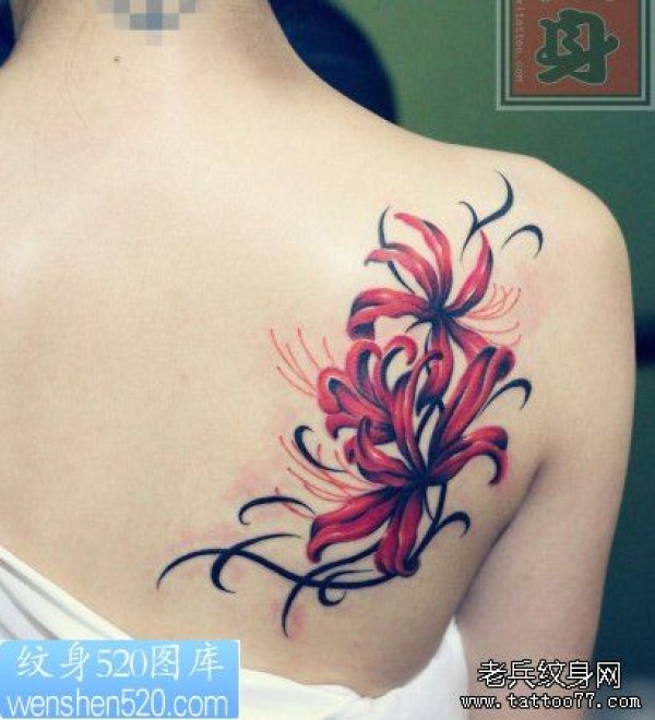 女生肩背精美的彼岸花纹身图案_女生纹身图案大全_纹身图吧