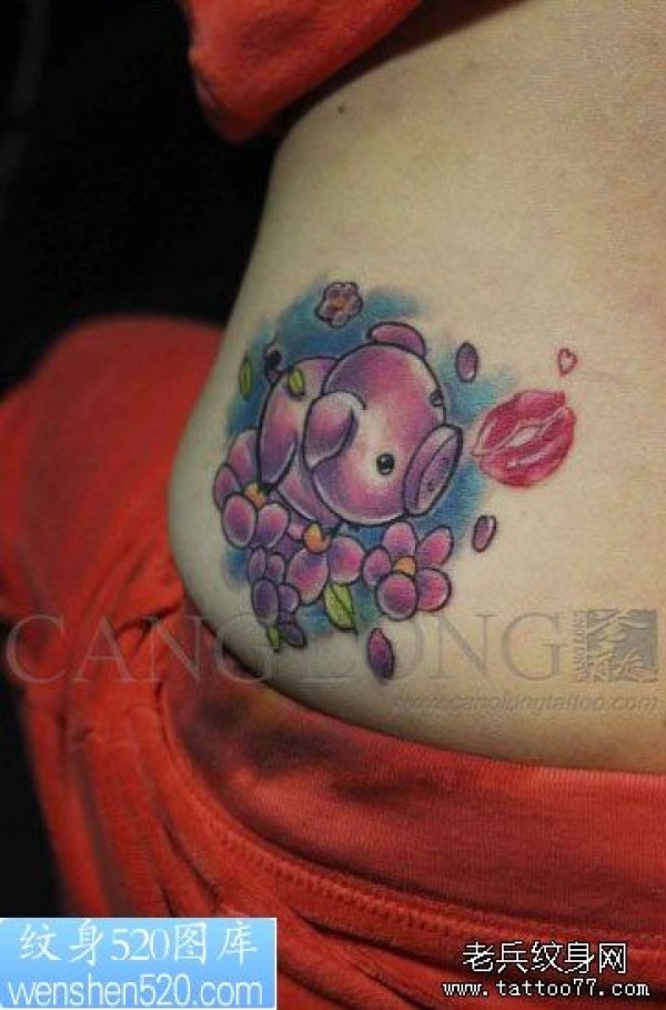 女生腰部潮流精美的小猪纹身图案_女生纹身图案大全_纹身图吧