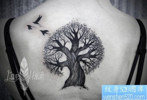 一款女性背部树纹身图案_女生纹身图案大全_纹身图吧