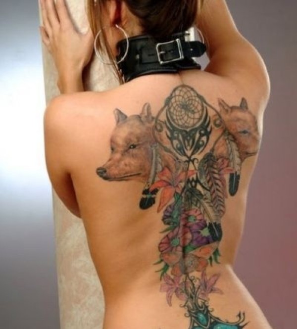 女性背部个性的狐狸纹身_女生纹身图案大全_纹身图吧