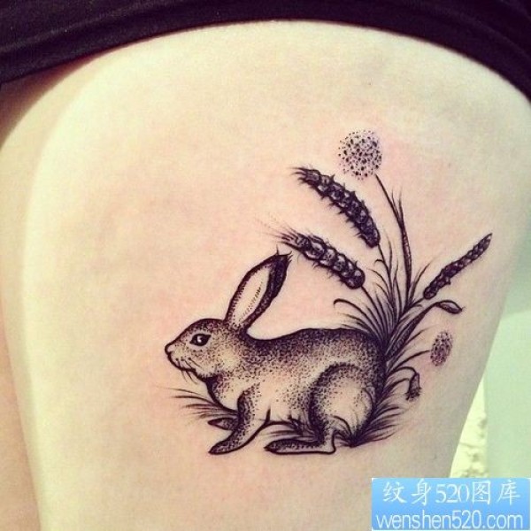 女性腿部点刺兔子纹身图案_女生纹身图案大全_纹身图吧