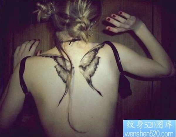 小清新女性背部翅膀纹身图案_女生纹身图案大全_纹身图吧