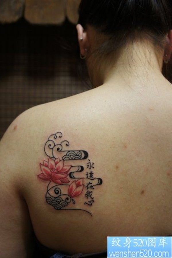 小清新女性背部莲花纹身图案_女生纹身图案大全_纹身图吧