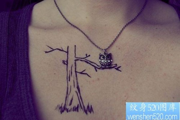 小清新女性胸部树纹身图案_女生纹身图案大全_纹身图吧