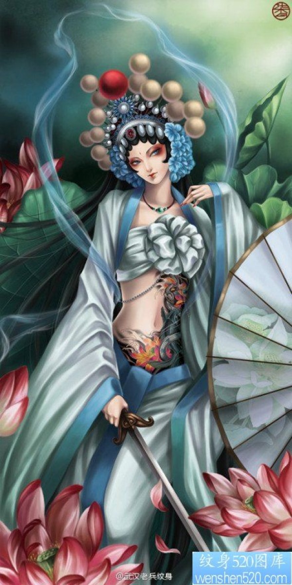 插画美女纹身壁纸图案_女生纹身图案大全_纹身图吧