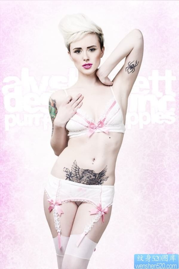 穿粉色比基尼美女的腹部性感纹身图案_女生纹身图案大全_纹身图吧