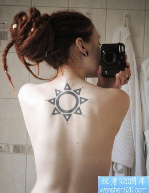 一款女性背部太阳纹身图案_女生纹身图案大全_纹身图吧