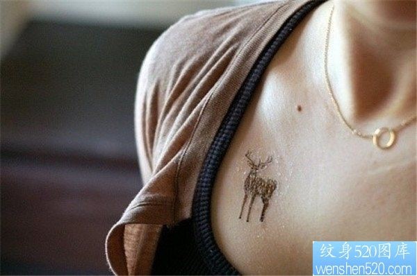 女生胸部可爱小鹿纹身图案_女生纹身图案大全_纹身图吧