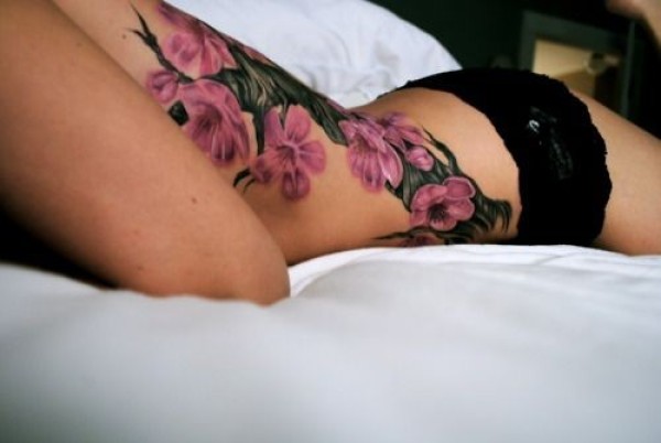 女性腰部绚丽的花朵纹身_女生纹身图案大全_纹身图吧