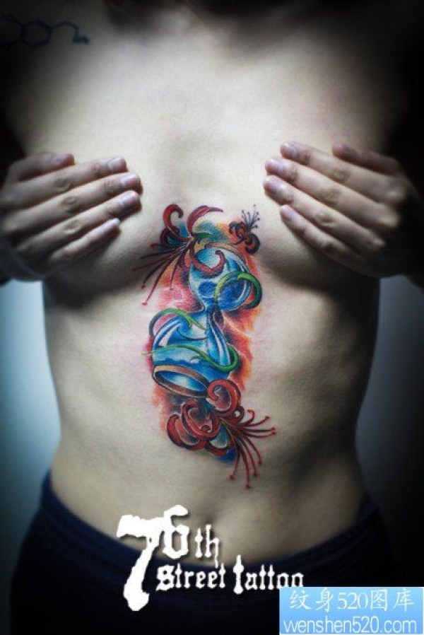 美女腹部漂亮潮流的沙漏彼岸花纹身图片_女生纹身图案大全_纹身图吧