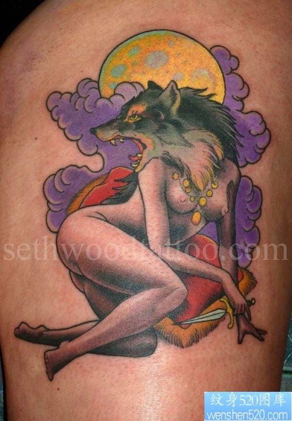 一幅潮流性感的狼头美女纹身作品_女生纹身图案大全_纹身图吧