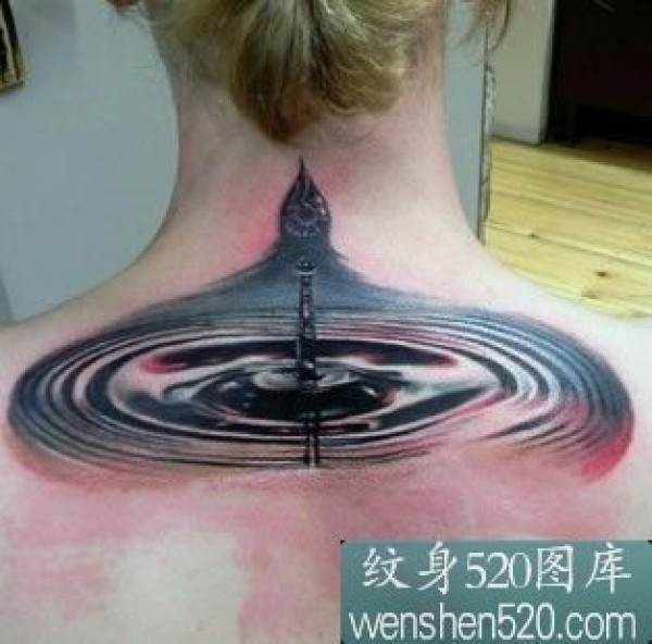 个性女性后颈部水滴特效纹身_女生纹身图案大全_纹身图吧