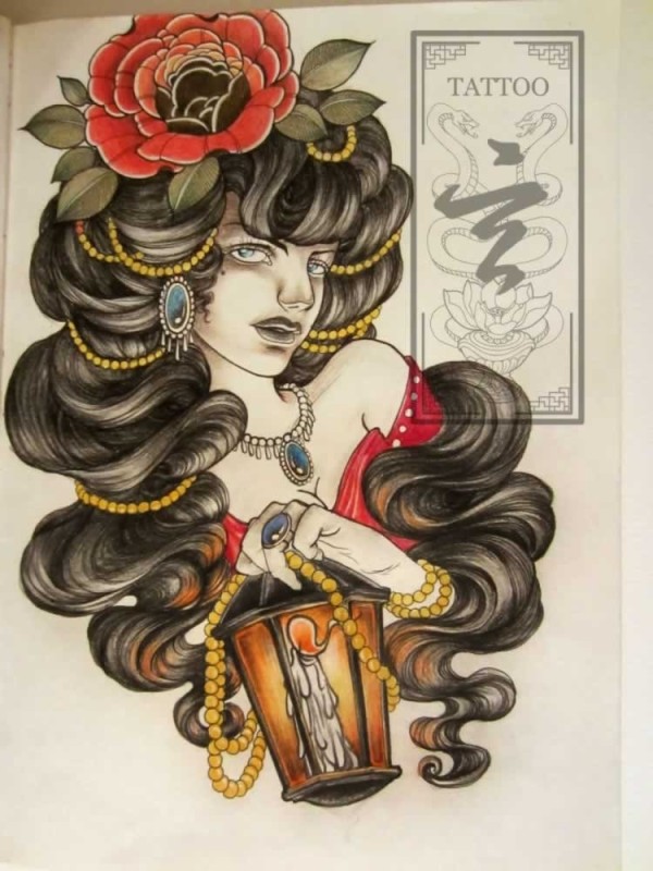 彩色半胛美女纹身_女生纹身图案大全_纹身图吧