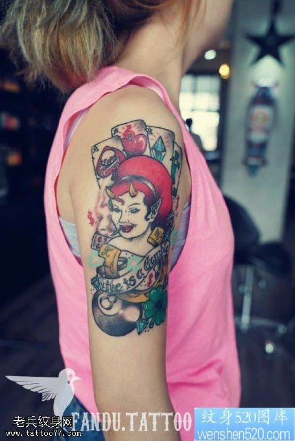 女性手臂彩色魔鬼女郎纹身图案_女生纹身图案大全_纹身图吧