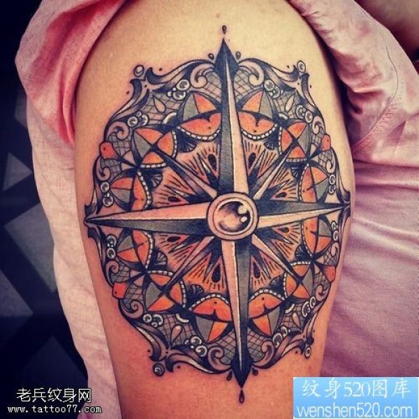 女性手臂彩色梵花指南针纹身图案_女生纹身图案大全_纹身图吧