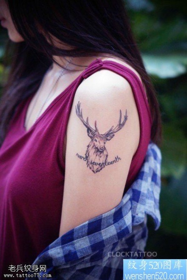 女性手臂黑灰羚羊字母纹身图片_女生纹身图案大全_纹身图吧