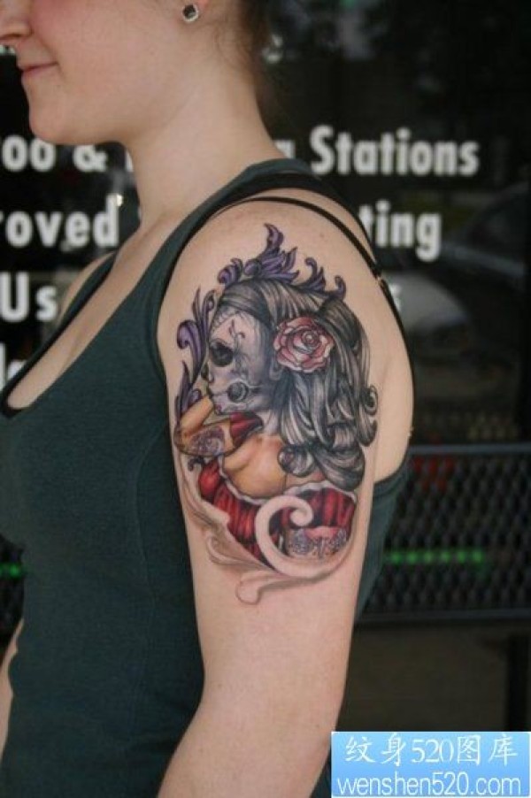 女性手臂彩色女郎纹身图案_女生纹身图案大全_纹身图吧