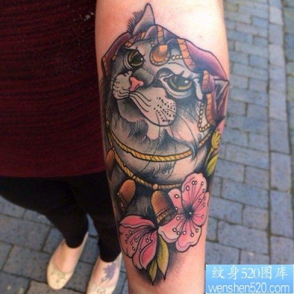 一款女性手臂猫咪纹身图案_女生纹身图案大全_纹身图吧