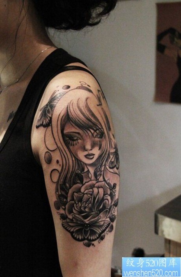 彩色半胛美女纹身_女生纹身图案大全_纹身图吧