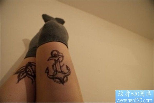 女生腿部个性锚黑灰欧美纹身图案_女生纹身图案大全_纹身图吧