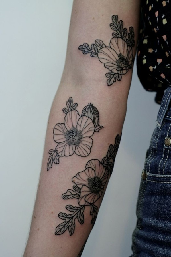 女性手臂上的花朵纹身_女生纹身图案大全_纹身图吧