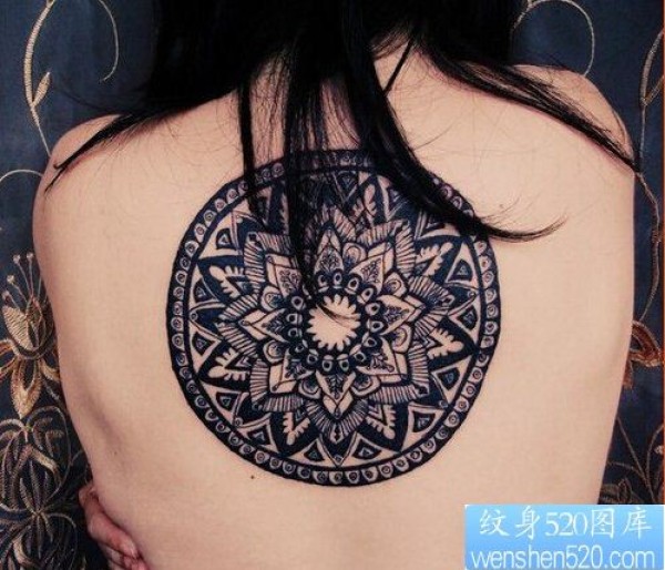 一款女性背部梵花纹身图案_女生纹身图案大全_纹身图吧