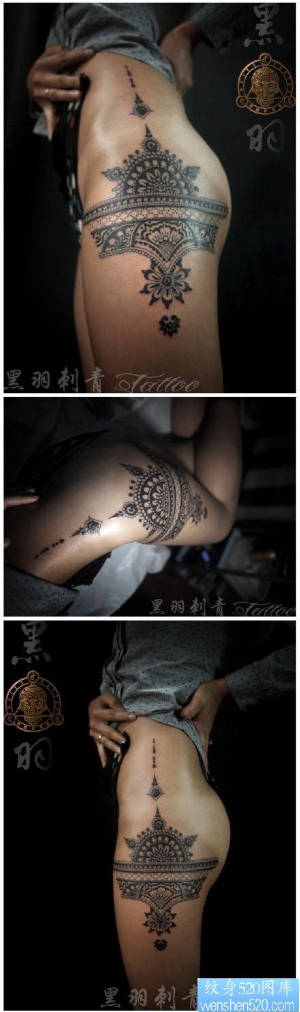 女人腿部胯部海娜花纹身图片_女生纹身图案大全_纹身图吧